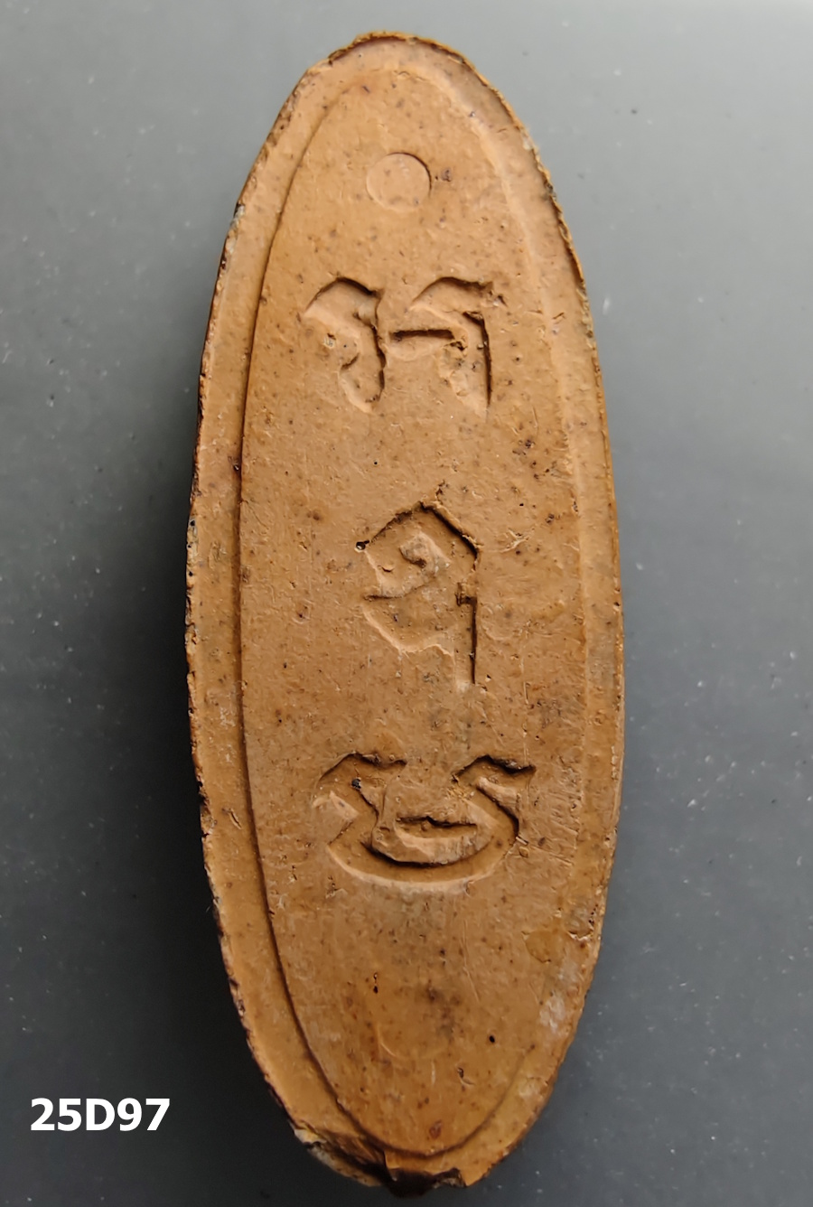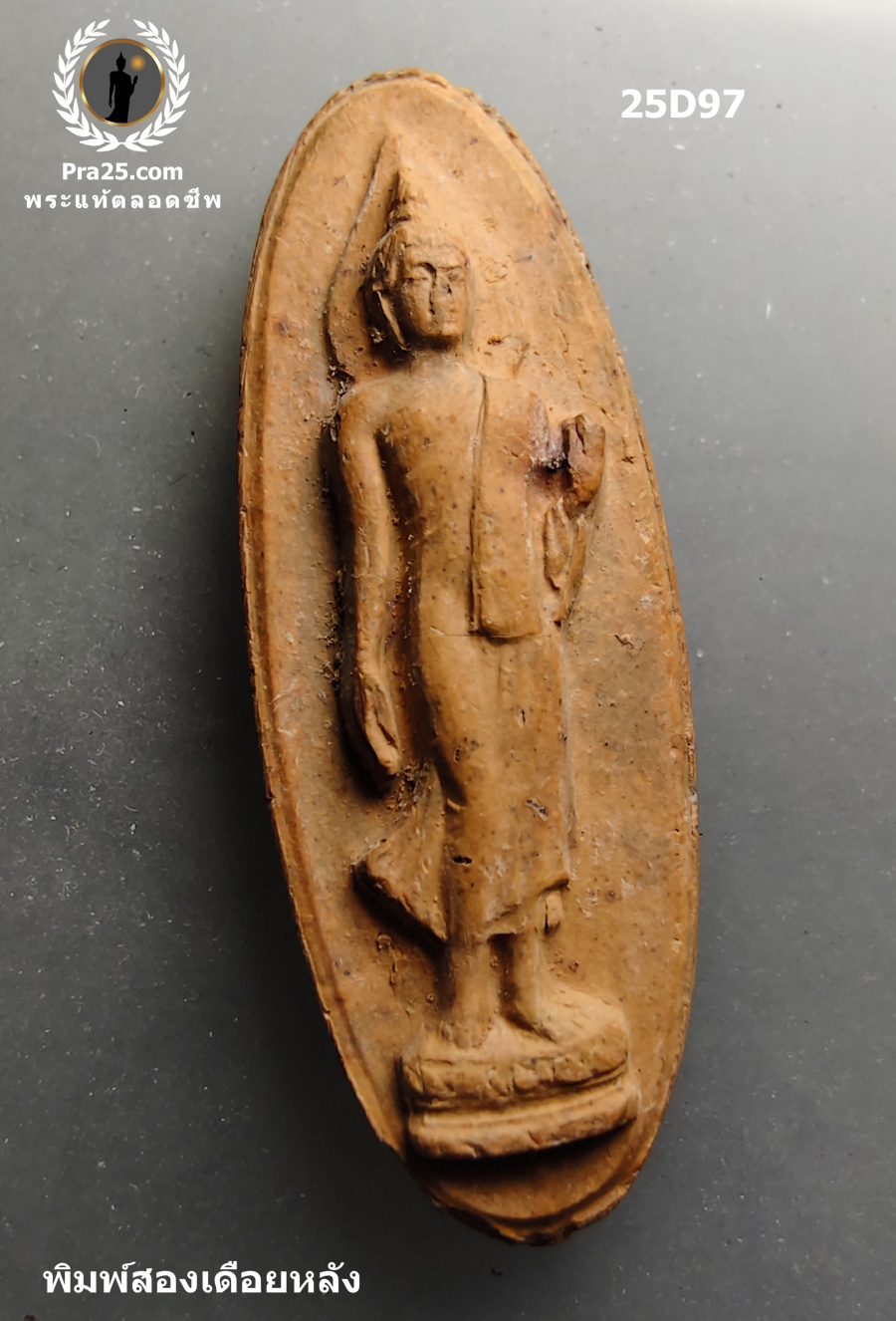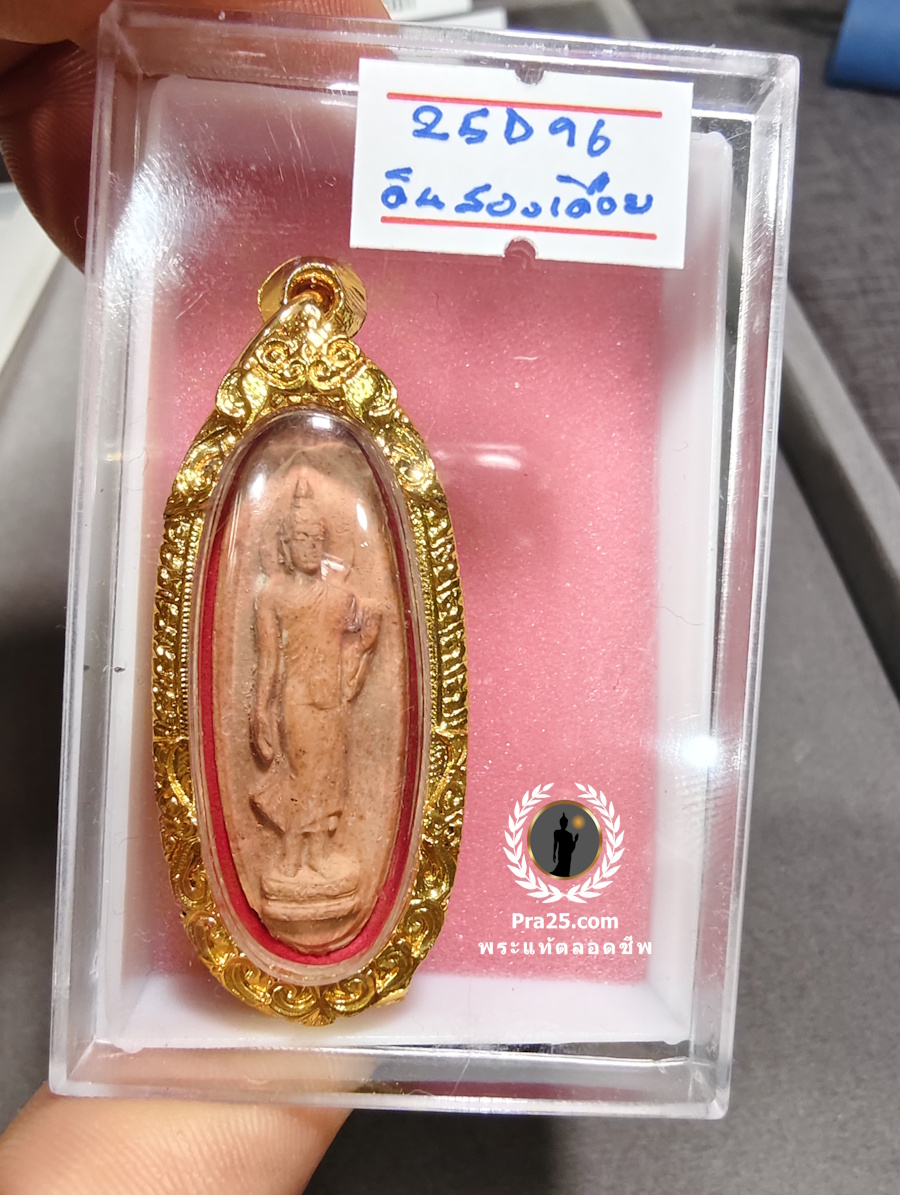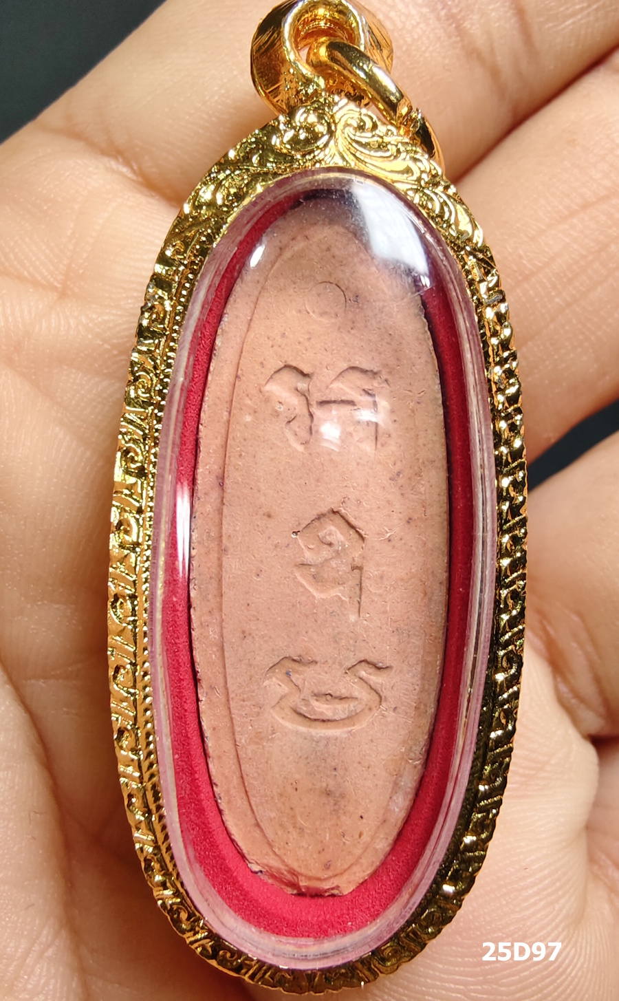 พระ 25 ศตวรรษ เนื้อดิน สวย สีส้มอิฐ พิมพ์สองเดือยหลัง พร้อมกรอบไมครอนสีทองพร้อมใช้