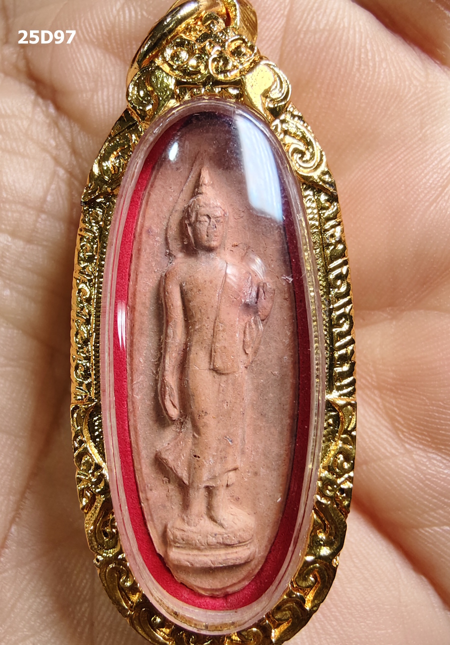 พระ25 ศตวรรษ เนื้อดิน สีส้มอิฐ สองเดือยหลัง พร้อมกรอบไมครอนสีทอง