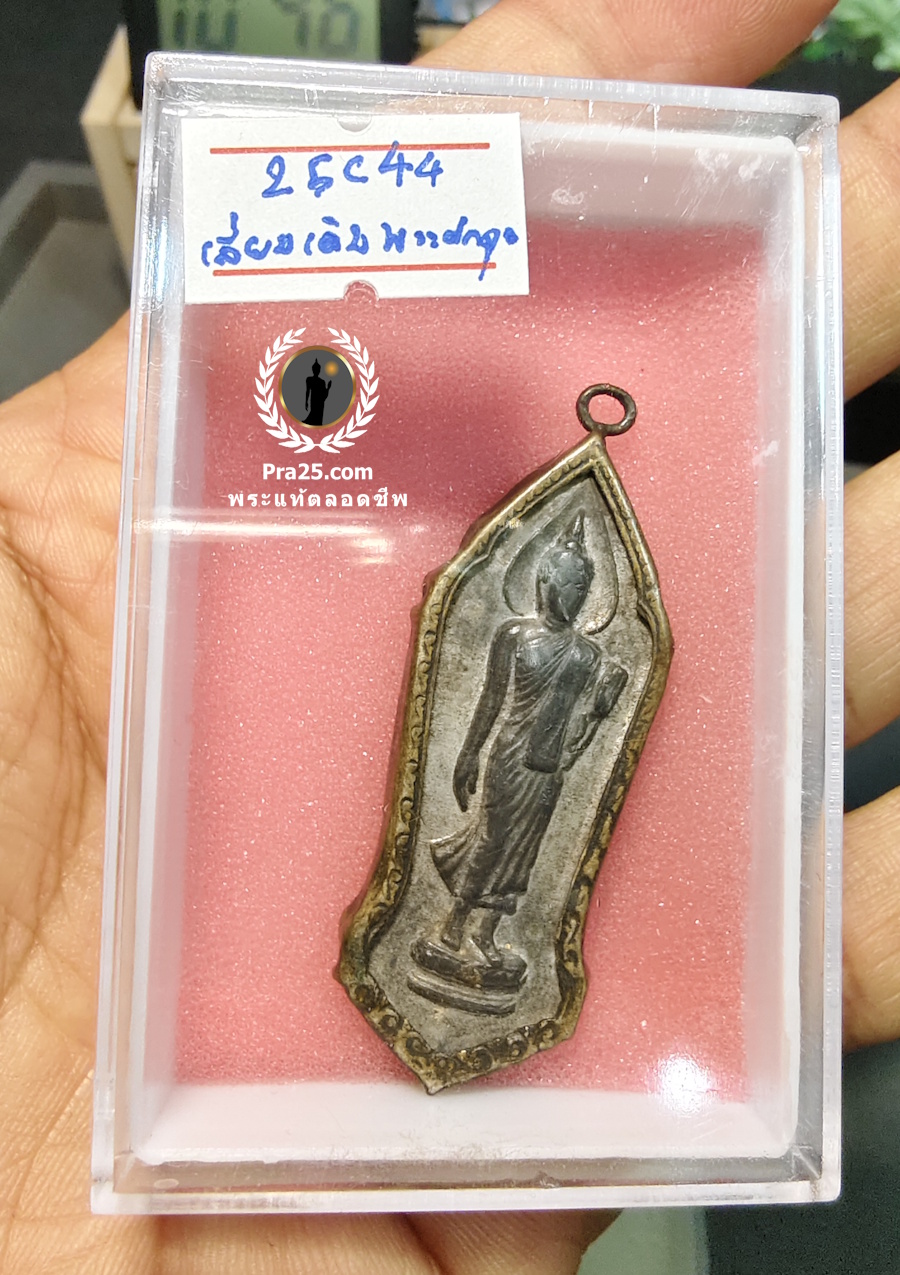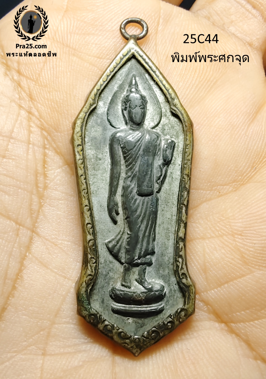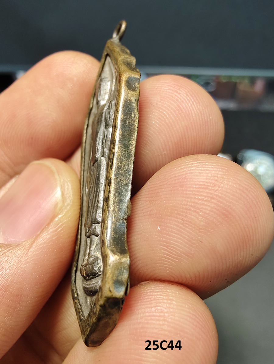 พระ 25 ศตวรรษ เนื้อชิน พิมพ์พระศกจุด เลี่ยมเดิม หลังธรรมจักรอุณาโลม