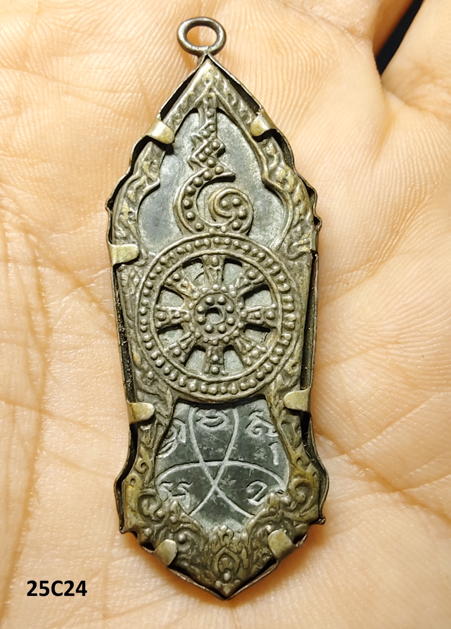 เนื้อชิน พิมพ์พระศกจุด เลี่ยมเดิม ธรรมจักรอุณาโลม